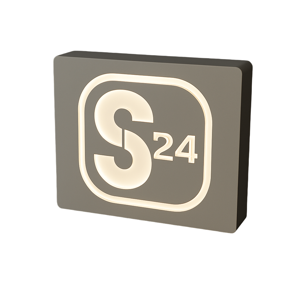Edle Leuchtschilder mit negativem Fräs- oder Laserschnitt – bei denen Schrift oder Logo aus der Fläche herausleuchten.